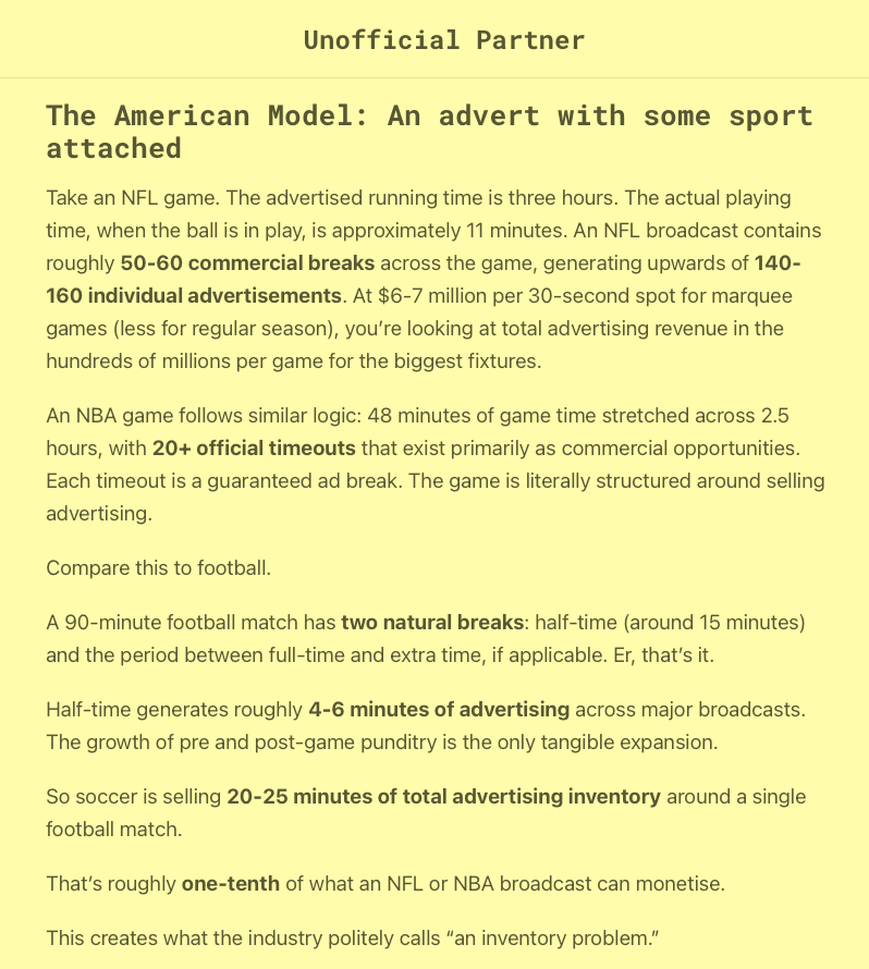 We're in a weird time, when nobody is happy. TV viewers, sports fans, music buyers...everyone is pushing back on the over- commercialisation of their thing.