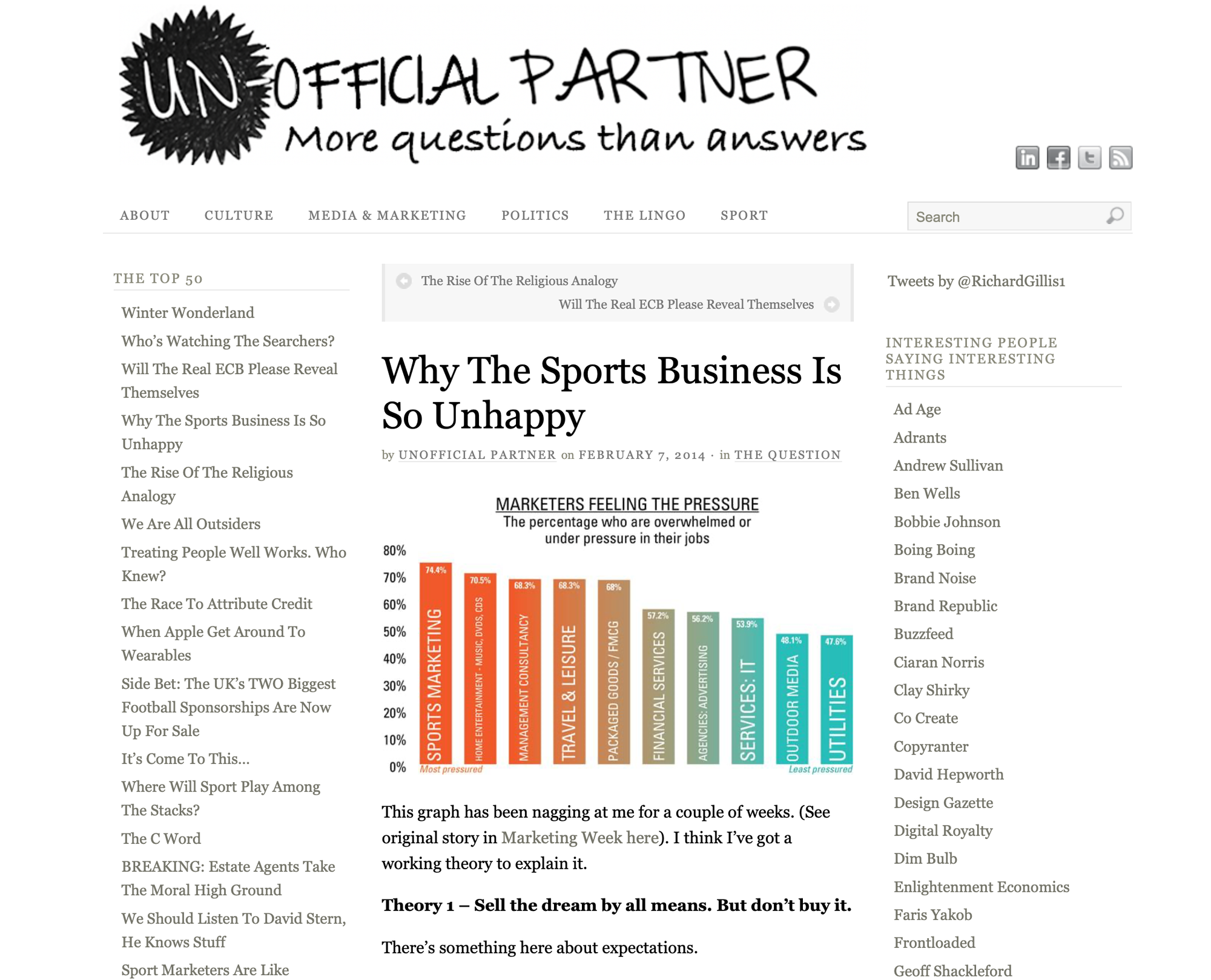 Unofficial Partner started life as a blog about the sports business in 2007.